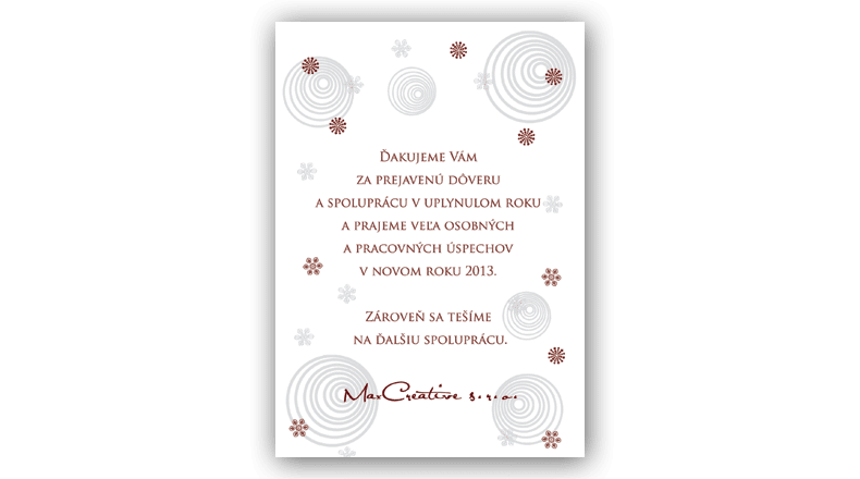 - Robíte elektronické novoročenky? Áno, optimalizované pre e-mail a sociálne siete.