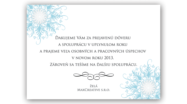 Novoročenky pre firmy s logom, podpisom, fotografiou, v cudzojazyčných a elektronických verziách