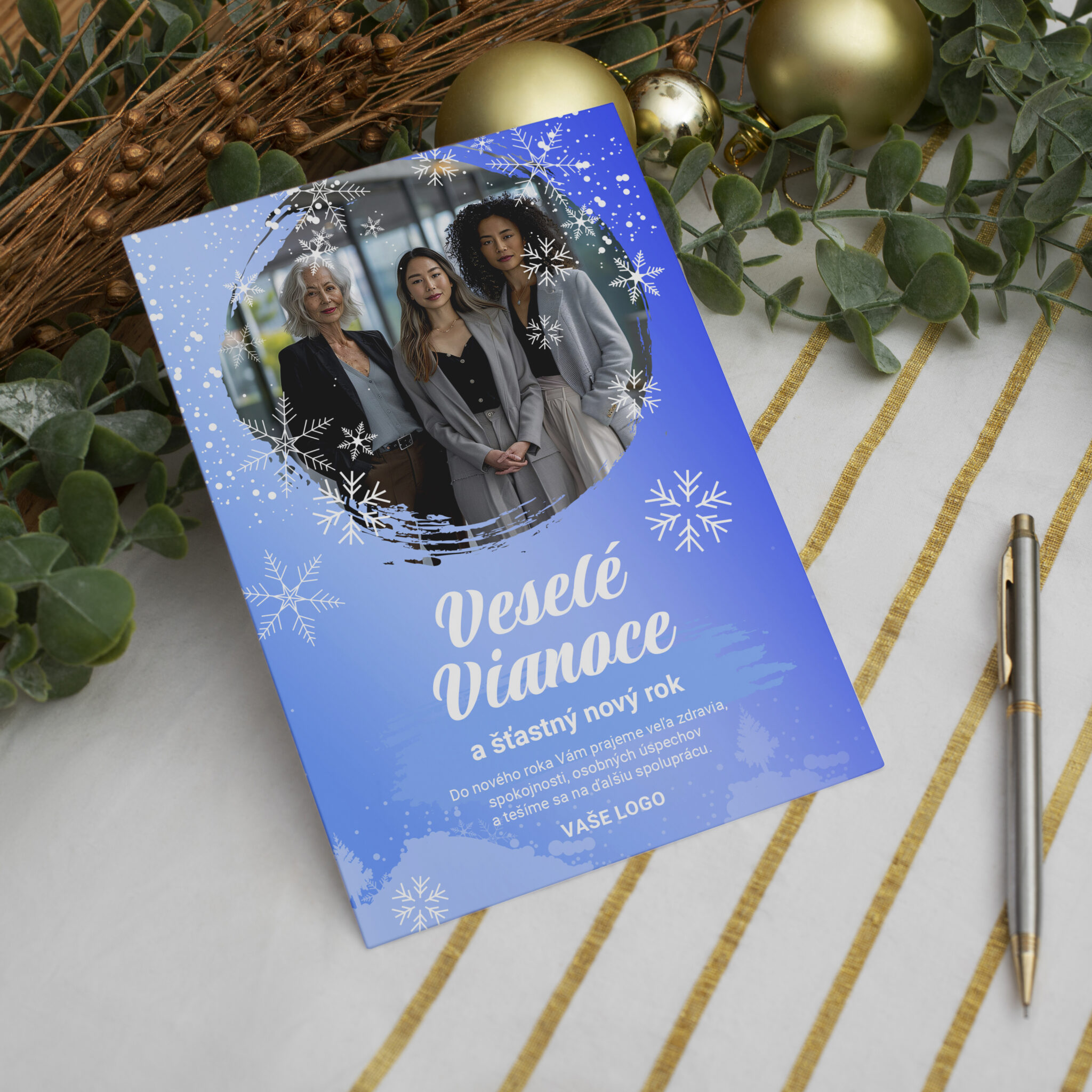 - Novoročenky s fotografiou – tímová alebo produktová fotografia.