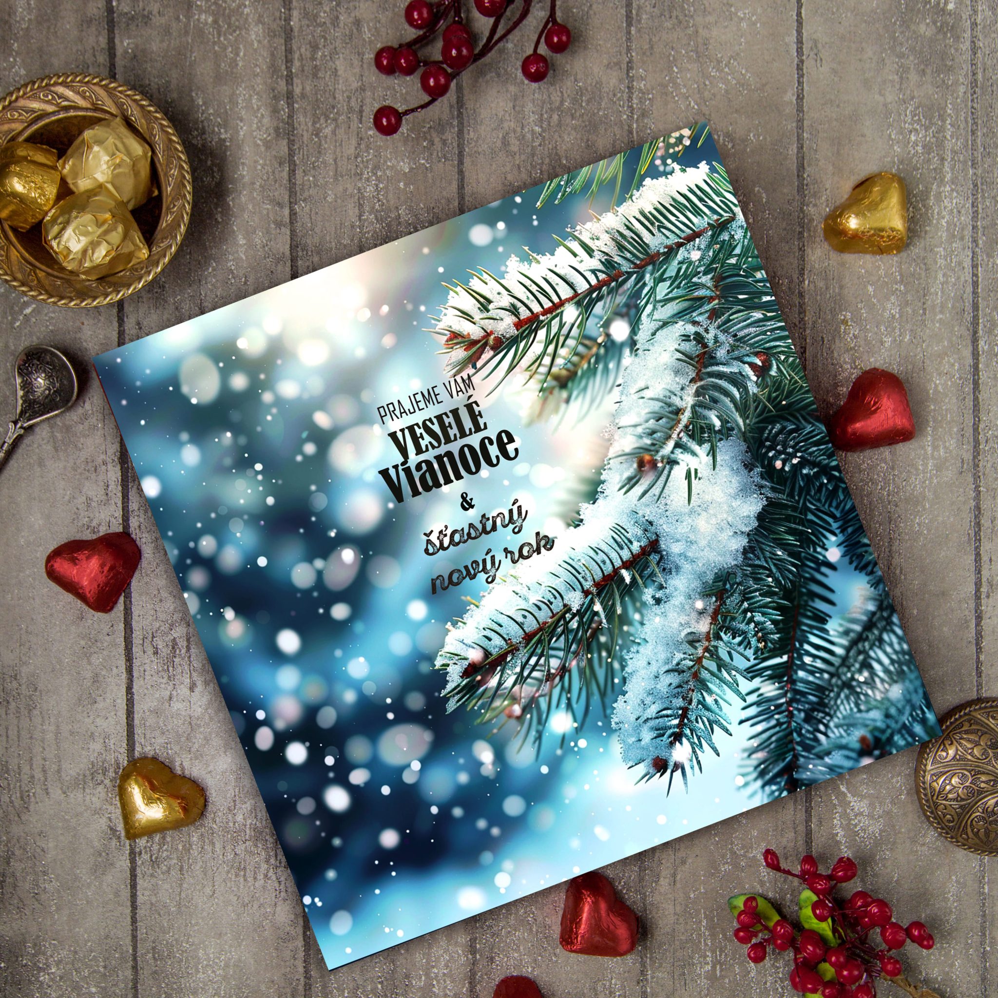 Krásny vianočný pozdrav. Potešte tých, na ktorým vám záleží. Rýchly návrh do 24 h, výroba od 3 dní.