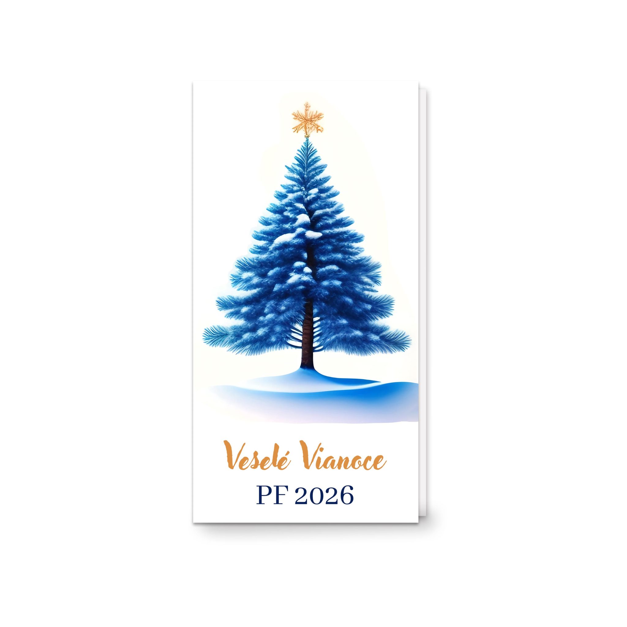 Vianočný pozdrav 2026_4 – biely s modrým stromčekom